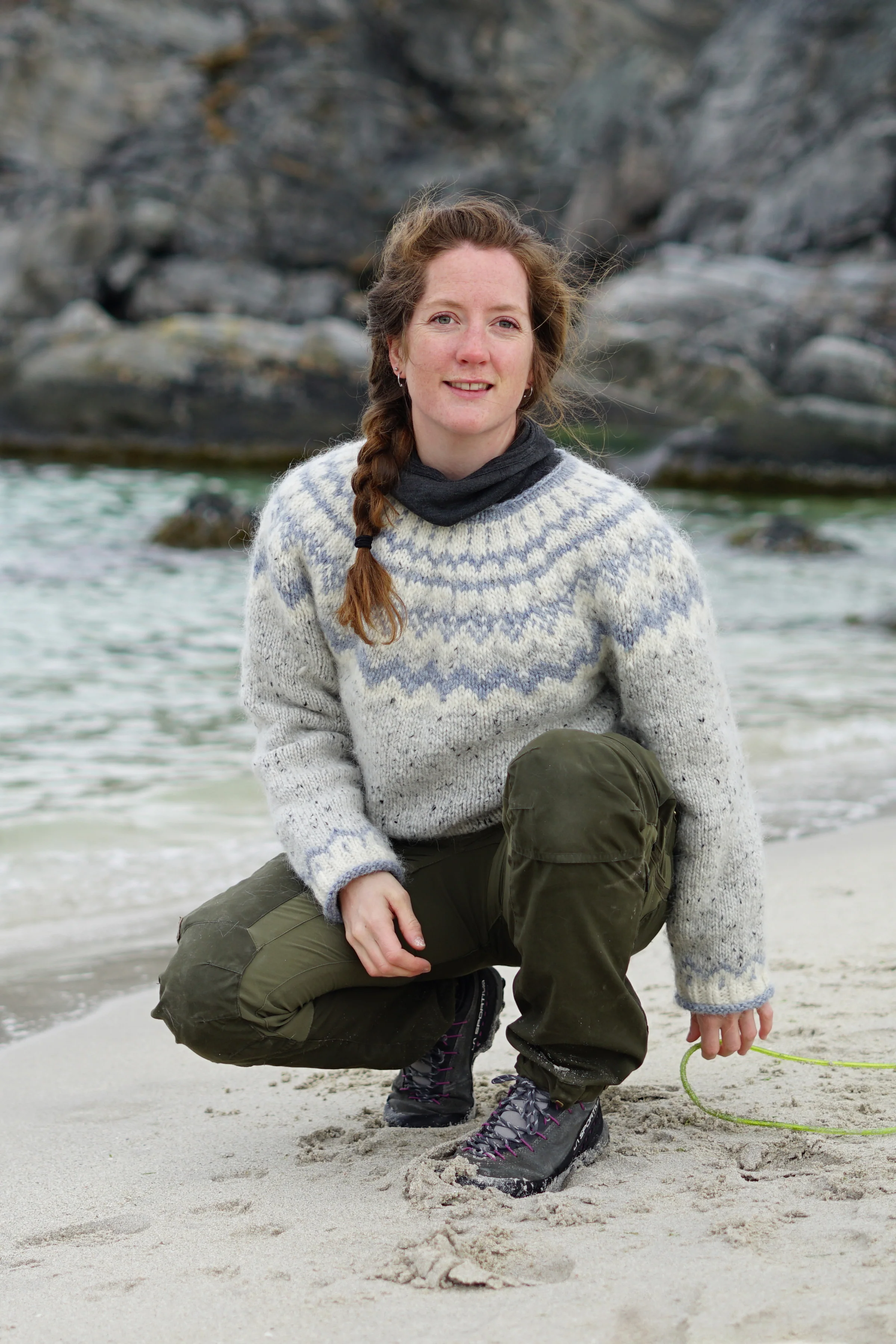 Den islandsk inspirerte friluftsgenseren Bárru, er en romslig genser med utsving. Den strikkes nedefra og opp. Halskanten er vid og god.. Det samiske ordet Bárru betyr bølge på norsk.