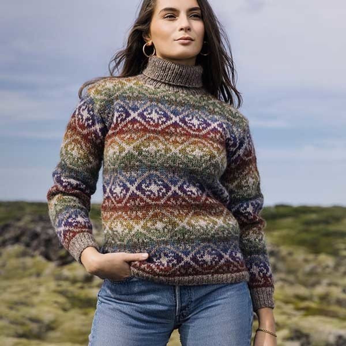Jörð er étt design fra Védís Jónsdóttir og denne vakre genseren strikkes nedenifra og opp med isydde ermer